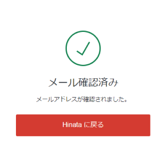 ご登録のメールアドレス宛に、アカウントを認証するメールが届きますので「アカウントを認証する」をタップします。認証後、HINATAに戻るボタンをタップしてください。